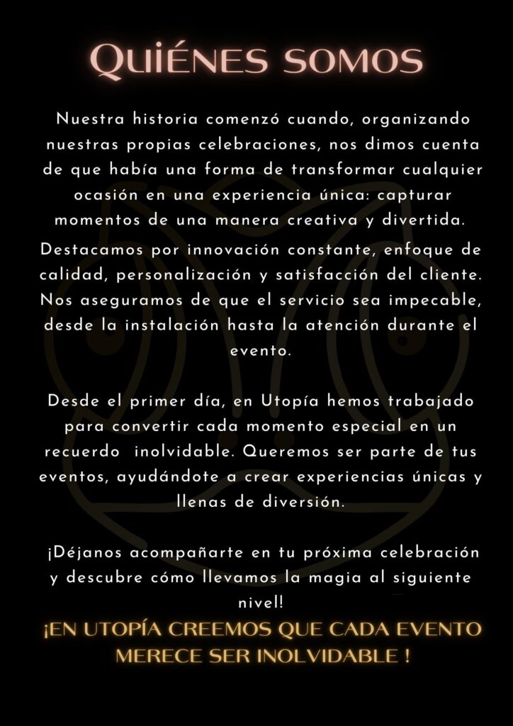 En Utopía, no ofrecemos solo servicios, sino emociones, recuerdos y experiencias que duran para siempre.