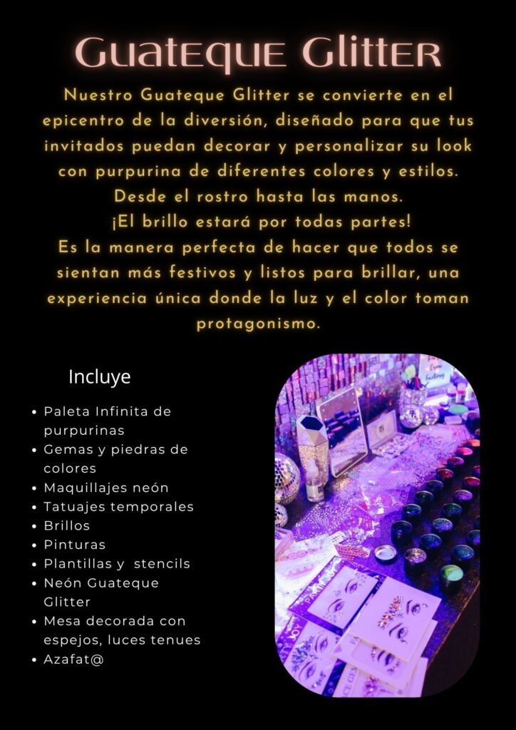 El maquillaje glitter es la última tendencia en fiestas y festivales, y en Utopía lo llevamos directamente a tu evento. Nuestro equipo de artistas transforma a tus invitados con diseños brillantes, originales y divertidos. Es perfecto para bodas boho, fiestas de cumpleaños, despedidas o eventos temáticos. ¡Todos querrán pasar por el rincón glitter!